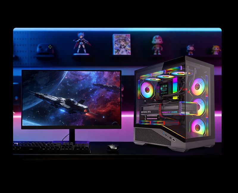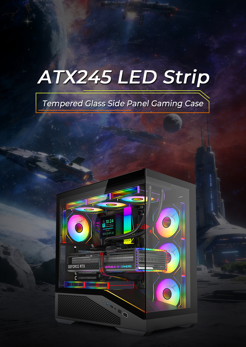 Boîtier de jeu à panneau latéral en verre trempé à bande LED ATX245