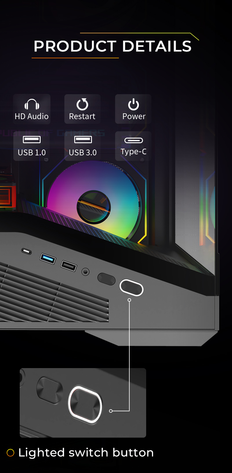Front panel / material Metal 0.7MM SPCC, with LED strip at bottom