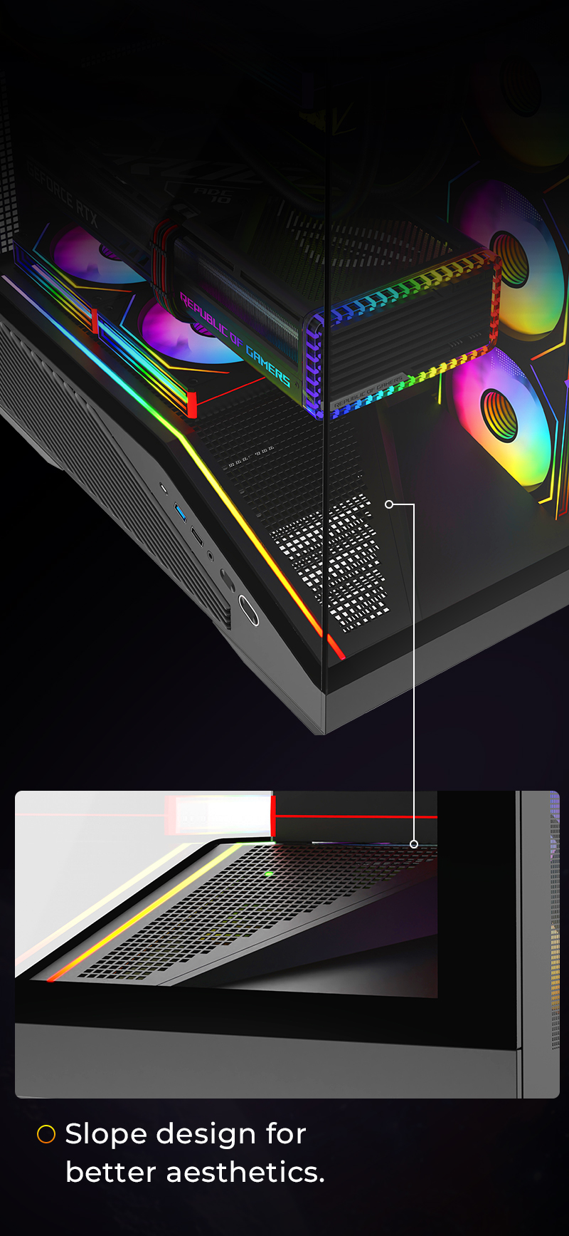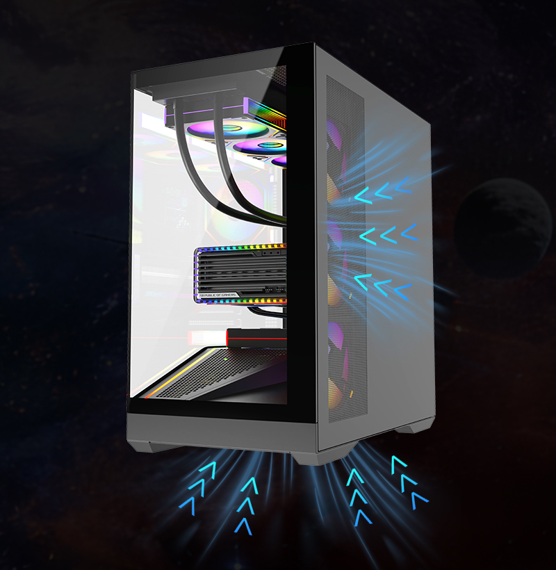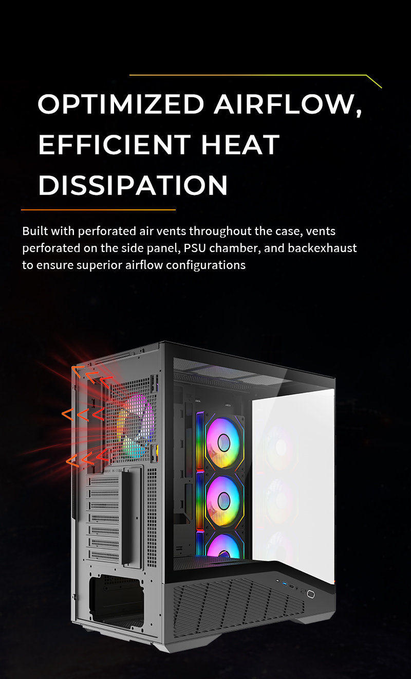 Left / right side panel Left side tempered glass+ cooling holes,
