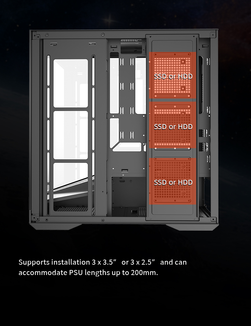 Driver Bays 3.5 HDD*3PCS or 2.5 SSD*3PCS
