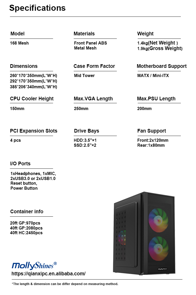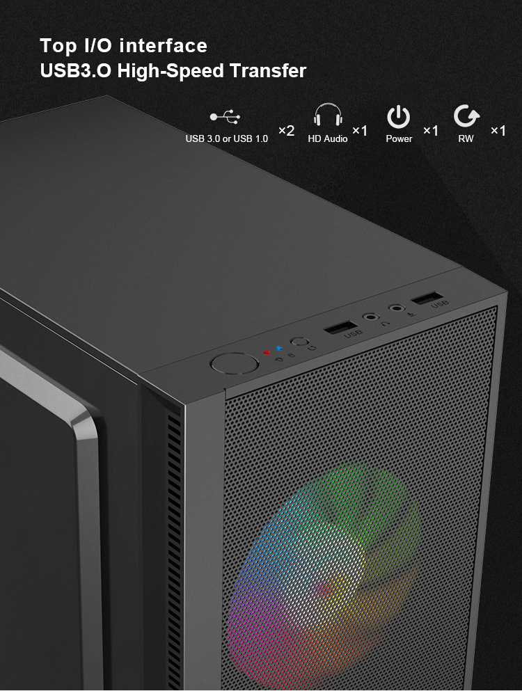Front panel:ABS Plastic/Metal Panel/ARGB Strip
